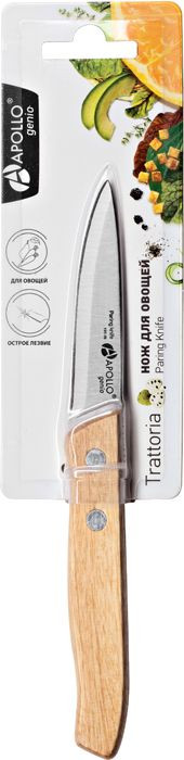 Apollo Нож для овощей «Trattoria»В данный момент этот товар отсутствует в продаже. Возможно, у нас найдется аналогичный или похожий товар здесь. Серия: Trattoria Нож для овощей с деревянной рукояткой. Ровная режущая кромка. Лезвие выполнено из нержавеющей стали. Эргономичная деревянная рукоятка, разработанная нашими дизайнерами с учетом анатомии человеческой руки. Подходит по размеру как для мужских, так и для женских рук. Обработка рукоятки специальными восками для долговечности и «выживаемости» при использовании. Рукоятка изготовлена из эвкалипта. Его древесина обладает высокой прочностью и биостойкостью. Уникальная фактура дерева не окрашена краской! Позволит насладится природной красотой дерева! |