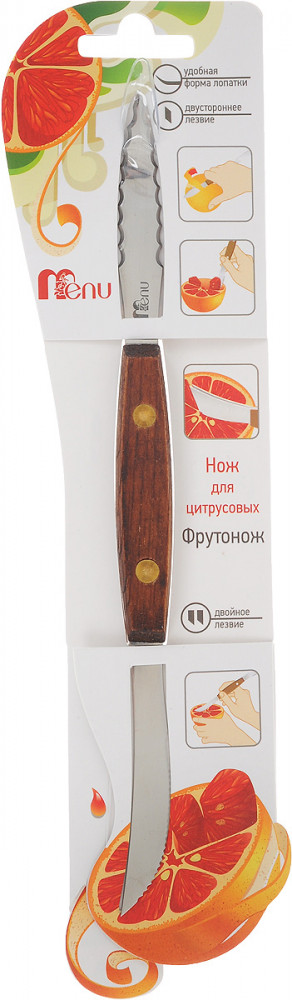 Menu Нож для цитрусовыхВ данный момент этот товар отсутствует в продаже. Возможно, у нас найдется аналогичный или похожий товар здесь. Это универсальное приспособление для цитрусовых фруктов. С одной стороны нож имеет загнутое лезвие для быстрого и легкого очищения цитрусовых фруктов от кожуры. С другой стороны он имеет двойное зубчатое лезвие, которое позволяет аккуратно отделить мякоть фрукта от мембран, а затем достать её. При использовании двойного лезвия для извлечения мякоти не очищайте фрукт предварительно, просто разрежьте его пополам. |