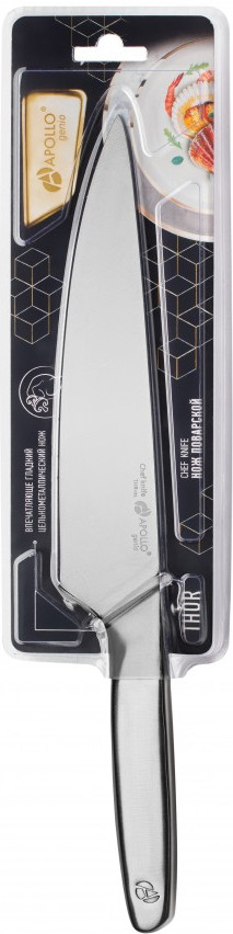 Apollo Genio Нож поварской «Thor»В данный момент этот товар отсутствует в продаже. Возможно, у нас найдется аналогичный или похожий товар здесь. Серия: Thor Это тщательно отполированный цельнометаллический нож. Применение бесшовной технологии при изготовлении делает ножи более гигиеничными. Благодаря отсутствию зазоров и соединений на ноже не скапливается грязь. Лезвия ножей изготовлены из нержавеющей стали марки 3Cr14 и имеют твердость по Роквеллу 50-55 HRC. Нож заточен одним из сложнейших способов, применяемых при производстве продуктов премиум-класса. Данный тип конусной заточки позволяет сохранить остроту лезвия даже при интенсивном использовании. |