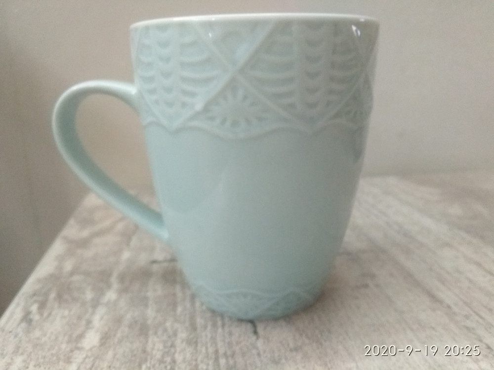 Кружечка отличного качества, легкая, звонкая, цвет чуть бледнее чем на фото.