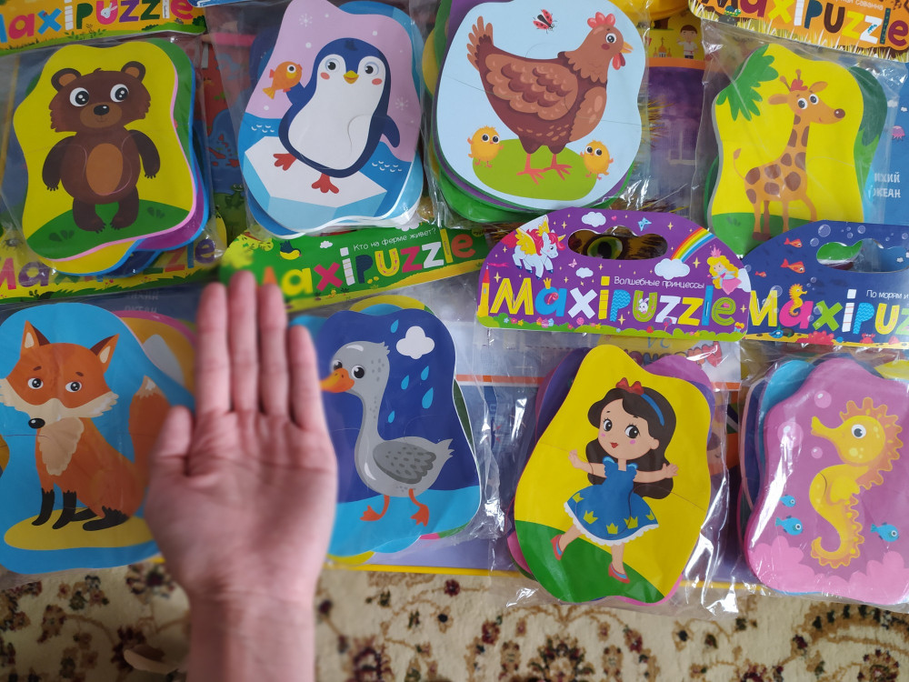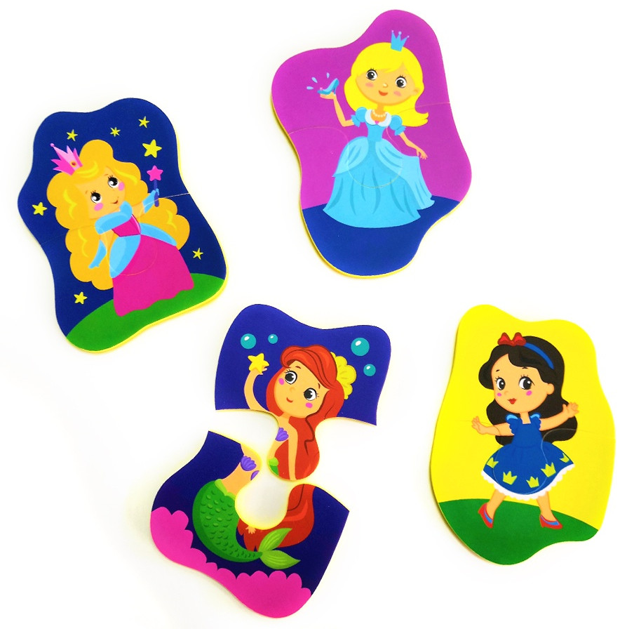 Пазл «Волшебные принцессы»В данный момент этот товар отсутствует в продаже. Возможно, у нас найдется аналогичный или похожий товар здесь. Серия: Maxi пазлы Отправиться в удивительный мир сказок, фантастических историй и захватывающих приключений приглашают малыша оригинальные развивающие пазлы. Роскошные наряды, золотые короны, хрустальные башмачки — чего только нет в этом ярко проиллюстрированном издании! Очаровательные героини сказок изображены на больших мягких пазлах, выполненных из лёгкой и пластичной пенки EVA. Каждый из четырёх пазлов набора разделён на две части, и эти половинки малышу необходимо подобрать и составить вместе, чтобы получилась цельная красочная картинка с прекрасной принцессой. А как зовут героиню и из какой она сказки — придётся узнать или угадать. Возможно, ребёнок ещё не знаком с этими принцессами, и взрослому нужно будет рассказать или прочитать о каждой сказочную историю. Малыш послушает с удовольствием и вскоре будет сам узнавать героинь, называть по именам и с ещё большей радостью собирать. |