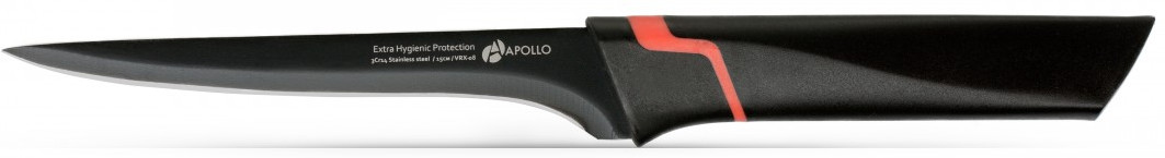 Короткое и тонкое лезвие изготовлено из высокопрочной стали и покрыто антибактериальным составом, который не истирается при длительном использовании. Такое лезвие при соприкосновении с продуктами не позволяет им окисляться, что сохраняет многие их полезные свойства. Заточка ножа осуществлялась по специальной технологии, благодаря чему режущая кромка является идеально ровной и длительное время не требуется ее подтачивать.
