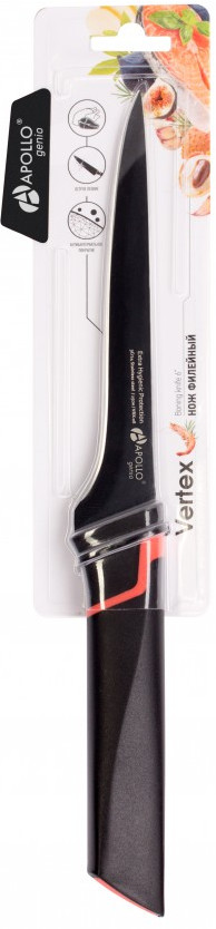 Нож необычайно удобен за счет эргономичности пластмассовой рукоятки. Она имеет литую структуру и не позволяет ножу выскользнуть из руки во время работы. Заостренный кончик лезвия очень удобен для вырезания семян или хвостиков из овощей и фруктов. Сбалансированность ножа делает его использование легким и комфортным. Ваши руки не устанут даже при интенсивной нагрузке. Необычный, слегка агрессивный, дизайн кухонного инструмента позволяет стать ножу украшением любой кухни.