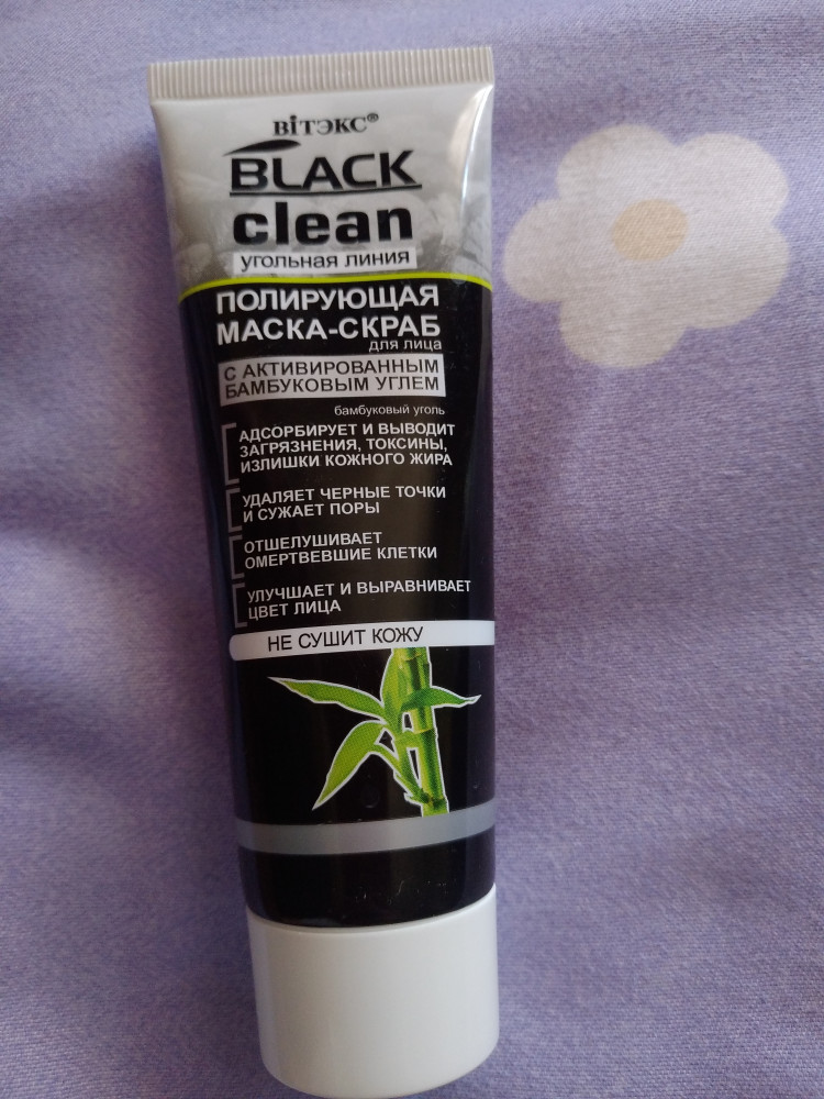 Вiтэкс Маска-скраб для лица полирующая с активированным углем-25% +36 хорошее очищение отшелушивание не сушит мягкая текстура приятный запах
