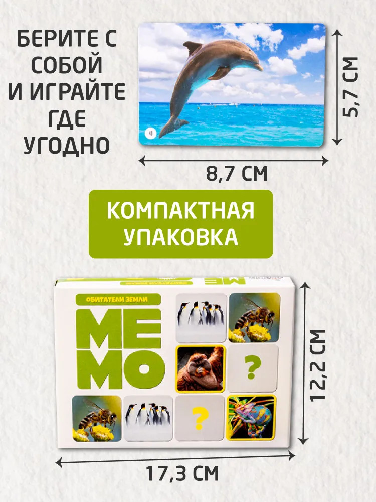 💳 Оплатить за товар можно при получении 🇰🇿 Есть бесплатная доставка по Казахстану 🎁 Копите бонусы с каждой покупки Серия: Мемо Соберите наибольшее число парных карт с одинаковыми изображениями и познакомьтесь с удивительными фактами о космосе! Тренируйте память, играя в классическую версию игры и открывая по 2 карточки в поисках совпавших, проверьте свою реакцию в игре «Кто быстрее?» или постройте «Падающую башню». |