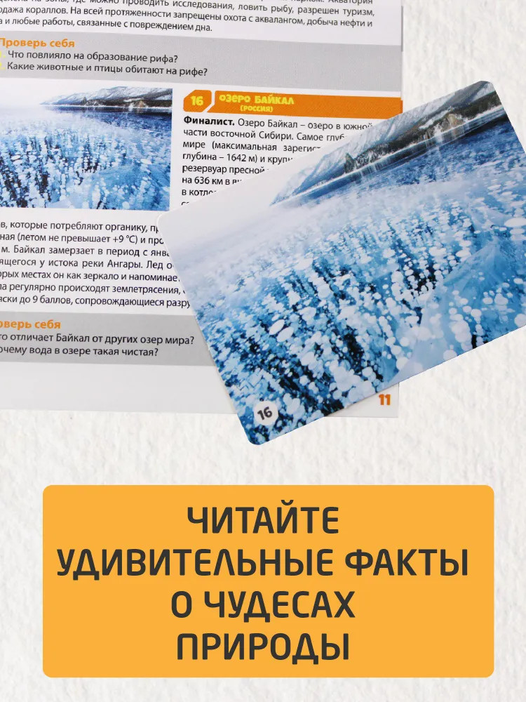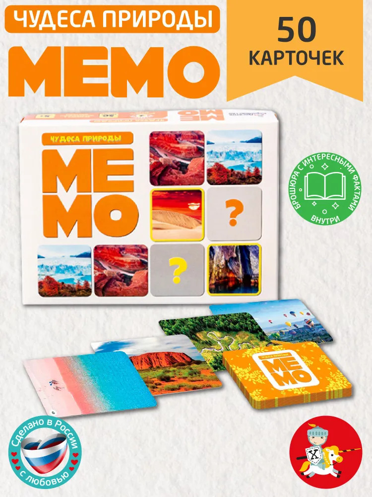 Игра очень хорошая. Старшая в 5 лет с лёгкостью обыгрывает взрослых) Для развития памяти, внимания оч полезная вещь. Картинки яркие. В сопровождении книжка с описанием чудес природы. География и природа чудес разнообразна: вулкан Везувий, грязевые вулканы в Азербайджане, озеро Байкал и многое многое другое. Рекомендую
