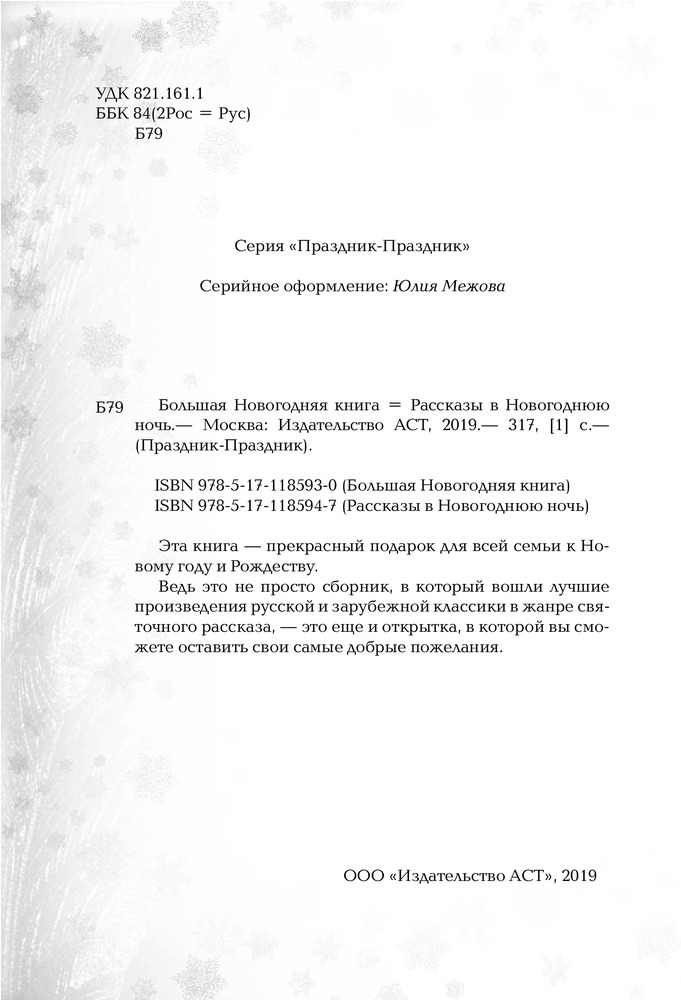 Большая Новогодняя книга. Рождественские историиВ данный момент этот товар отсутствует в продаже. Возможно, у нас найдется аналогичный или похожий товар здесь. Серия: Праздник-Праздник Эта книга — прекрасный подарок для всей семьи к Новому году и Рождеству. |