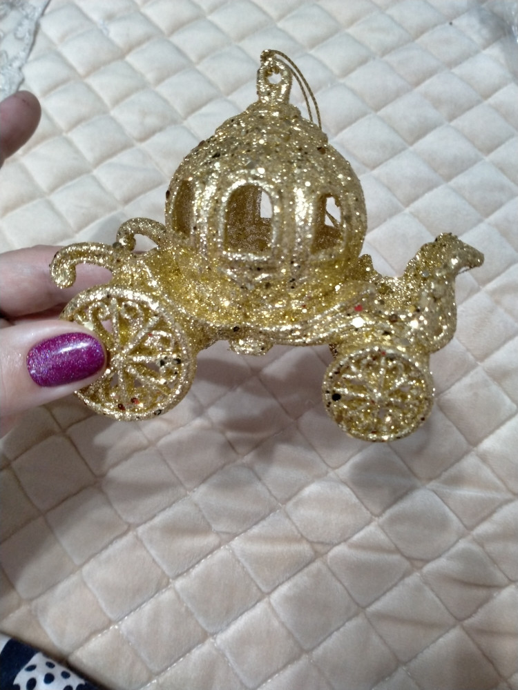 Потрясающе смотрится, реально позолоченная карета. Жалею что вторую оставшуюся не забрала. Фото не передаёт реальной красоты.