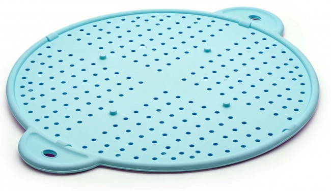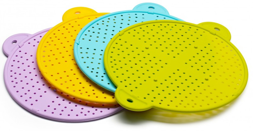 Хороший экран, по приемлемой цене. Силиконовый, мягкий качественный. С ним все именно жарит я, а не парится как под крышкой. Удобные ручки с двух сторон, можно сливать жидкость из кастрюли. И даже использовать, как подставку под горячее.