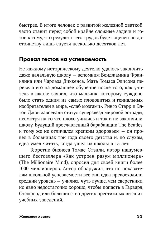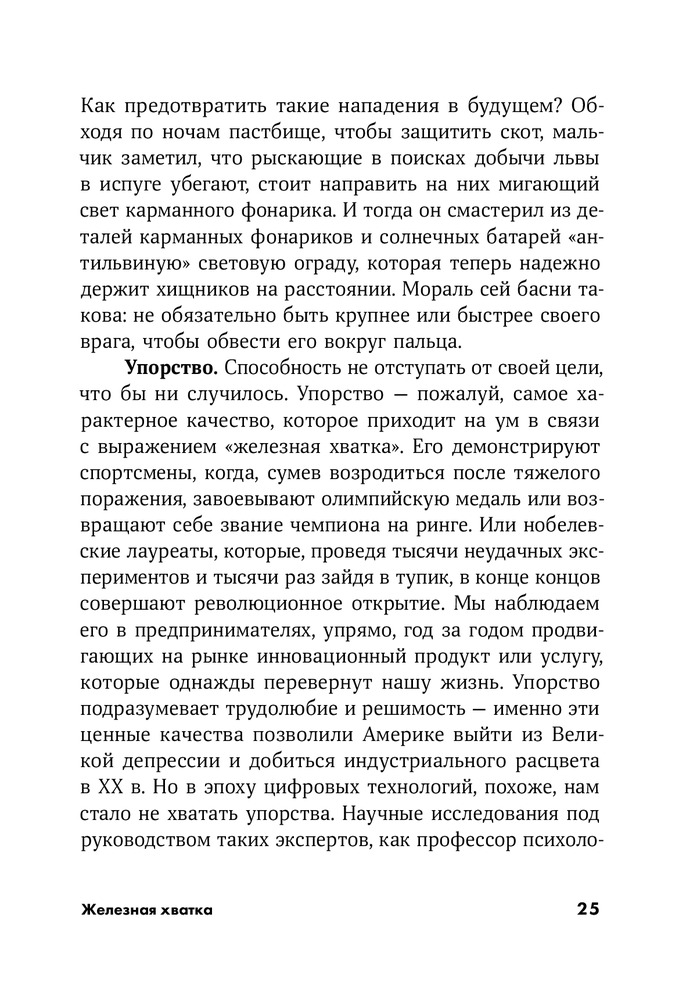 💳 Оплатить за товар можно при получении 🇰🇿 Есть бесплатная доставка по Казахстану 🎁 Копите бонусы с каждой покупки Серия: Саморазвитие «Железная хватка» — звучит немного старомодно, как будто из прошлого века. Но в наши дни это качество переживает второе рождение. Почему? Потому что, судя по всему, мы становимся мягкотелыми. Железная хватка — это когда работаешь в поте лица, а не сотрясаешь воздух пустым бахвальством. Это о характере, а не о харизме. Методичное упорство и живучесть, присущие людям с железной хваткой, никогда не считались секретным оружием успеха. |