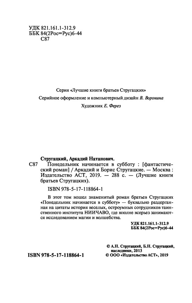 Понедельник начинается в субботуАркадий Натанович Стругацкий, Борис Натанович Стругацкий +114 жанр фантастика психоделический сюжет стиль Стругацких качественное издание слабый переплет