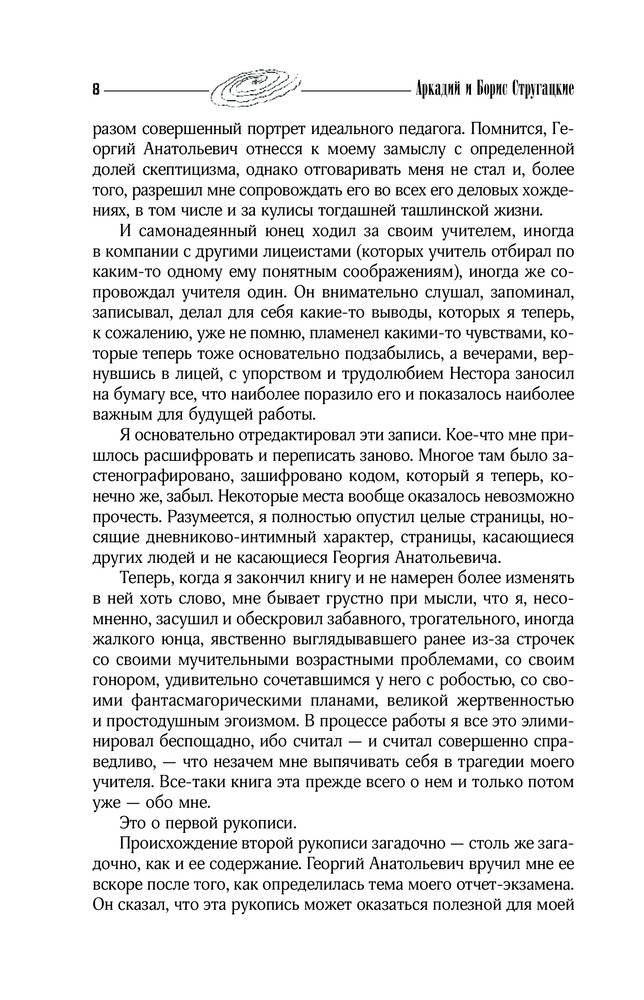 Аркадий Натанович Стругацкий — русский советский писатель, сценарист, переводчик, создавший в соавторстве с братом Борисом Стругацким несколько десятков произведений, считающихся классикой современной научной и социальной фантастики.