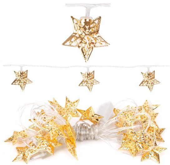 Волшебные гирлянды. Светят приятным желтым светом. Сами звездочки выполнены из золотистого крепкого пластика.