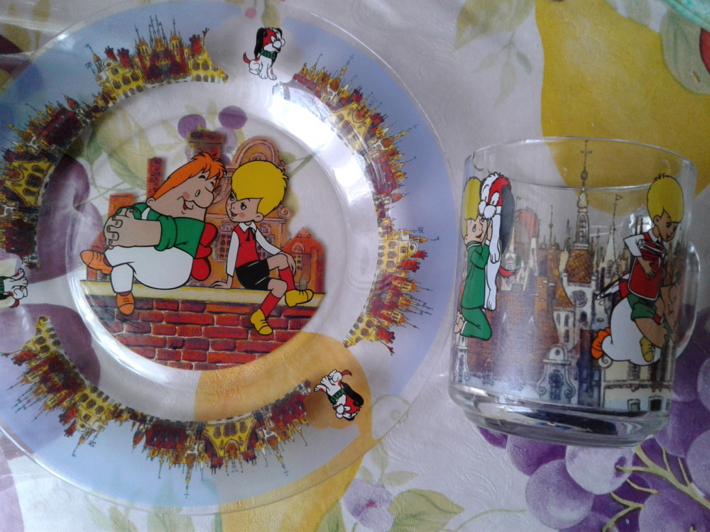 Заказала набор - тарелку и кружку "Карлсон" Качество стекла отличное, рисунок чёткий и яркий. Весёлый Карлон поднимает настроение и аппетит ) Стекло кружки не тонкое, наливаю и воду, и горячий чай или кофе - выдерживает. Упаковка Флип как всегда, была безупречна. Очень много слоя плёнки и оберточной бумаги. Единственный минус:на стенке кружки была царапина, которую сразу и не разглядеть из-за пестрого рисунка. Неприятная мелочь ( Или это брак производителя, или при упаковке кружку чем-то поцарапали - сие неведомо. . В целом, заказом очень довольна.