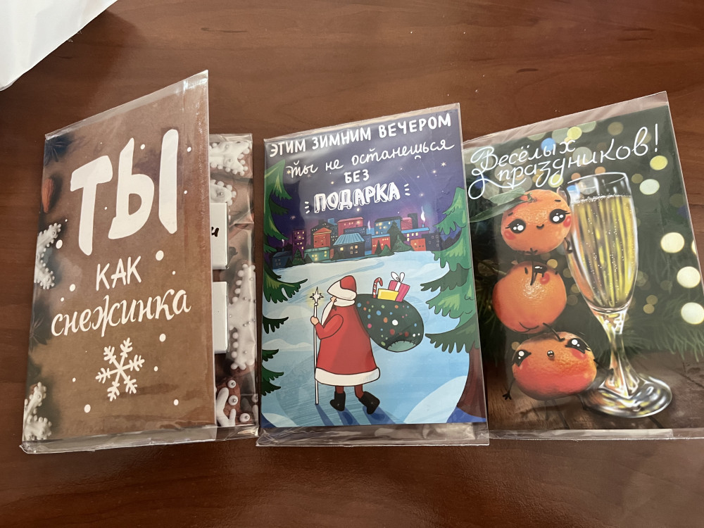 очень оригинальные открыточки,каждая в индивидуальной упаковке) очень необычный и оригинальный вариант дополнения к подарку,и шоколад вкусный)