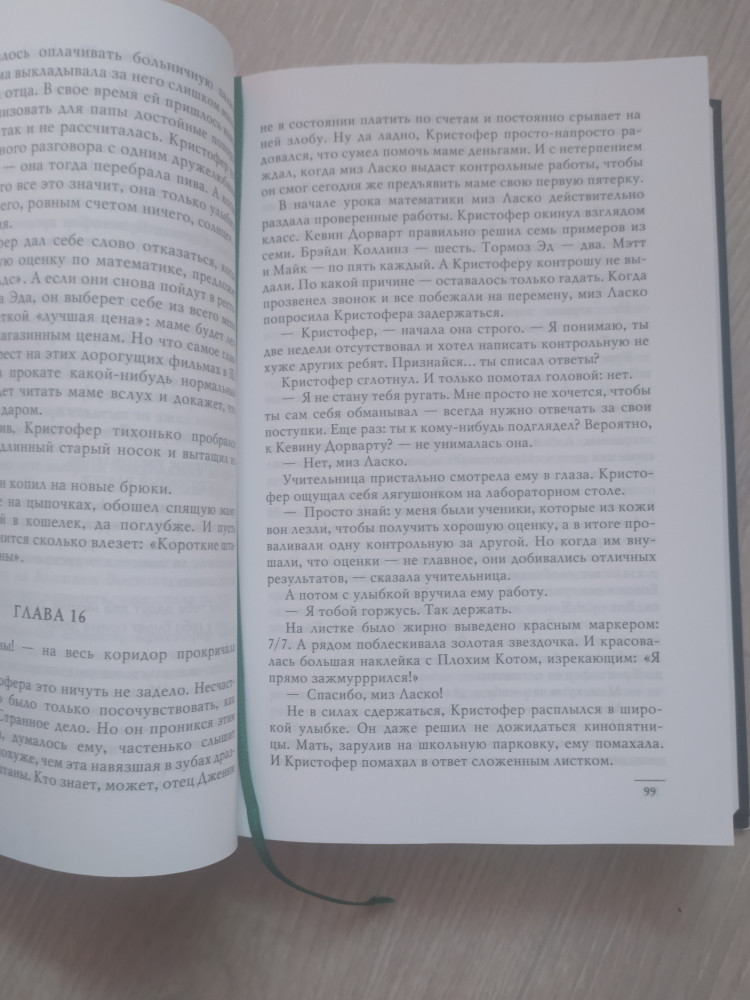 Качество чудесное, имеется суперобложка и зелёная закладка-лента. Книга достаточно объёмная, но страницы пролетали незаметно, до определённого момента. Конец очень странный, непонятный и затянутый, не то ради чего хотелось идти через 700 страниц:(