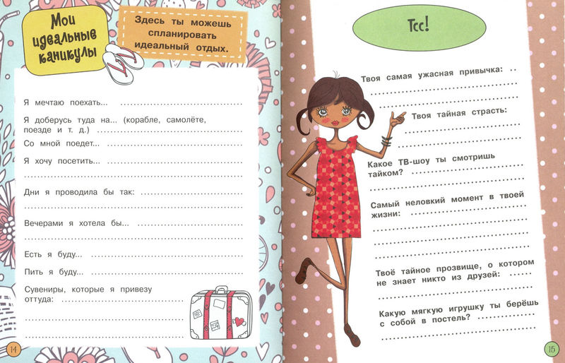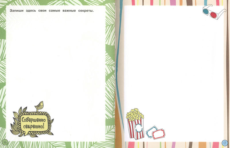 Здесь ты найдёшь забавные викторины, игры и рецепты, множество интересных идей и чистые страницы для важных записей.
