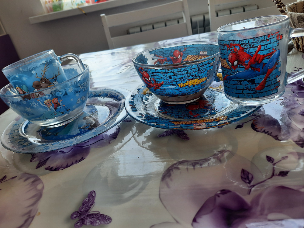 Красивая посуда. Доча в восторге. И рисунки очень качественно нанесены. Спасибо.
