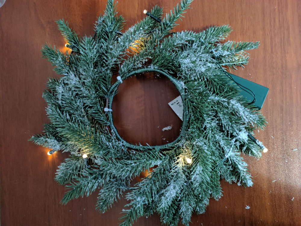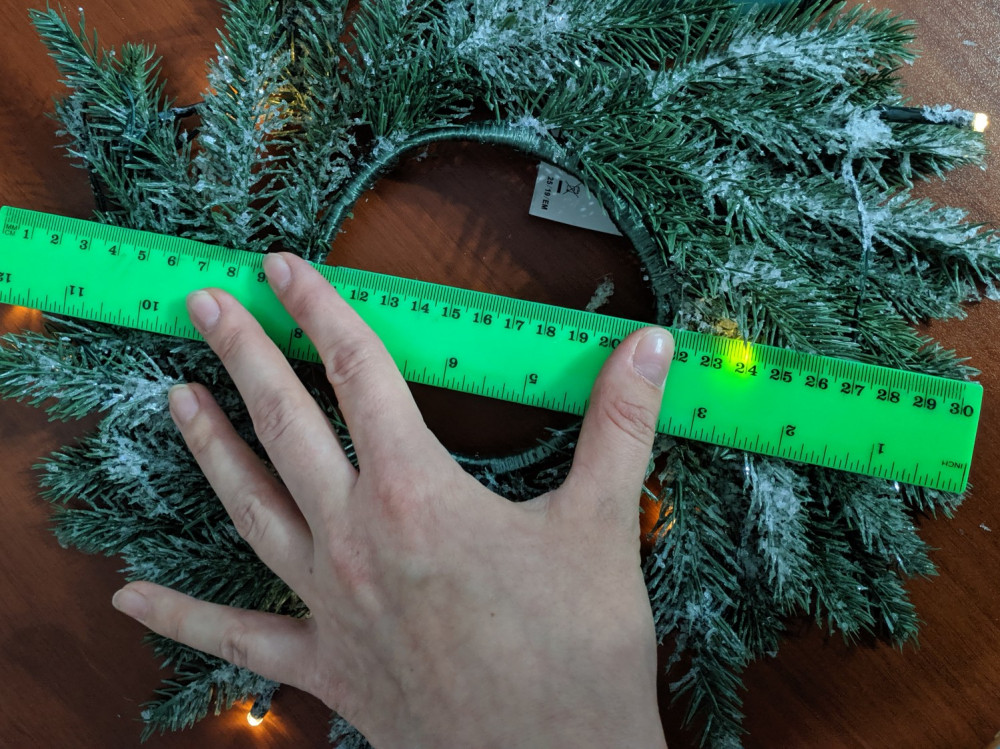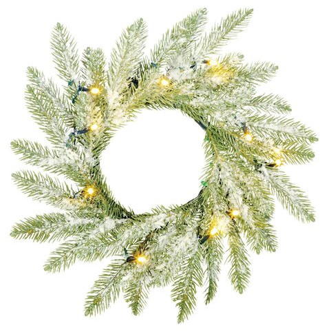 здесь нет 35 см в диаметре! от силы 30, снег страшно сыпется! венок светится на сквозь! нет заявленного количества веток, их по факту 10 примотано к основанию ХОМУТАМИ пластиковыми! светодиодов ну очень уж мало, слабое свечение видно на фото.Отказ.
