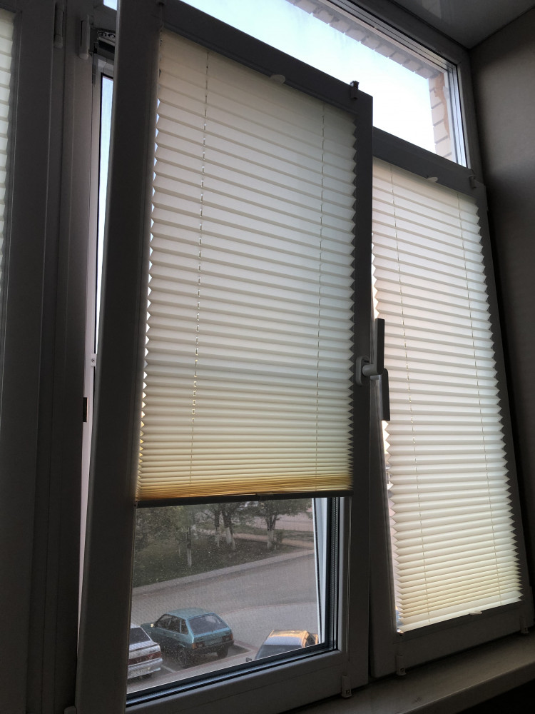Брала штору-плиссе цвета экрю. Переживала что не будут смотреться на белой раме. Но получилось хорошо. Когда их раскрываешь, то они становятся молочного цвета. Смотрятся неплохо. Крепила штору на липучки. Та что на открывающейся створке "села" надёжно. На глухой держится пол дня, дальше посмотрим. Штору-плиссе рекомендую к покупке.
