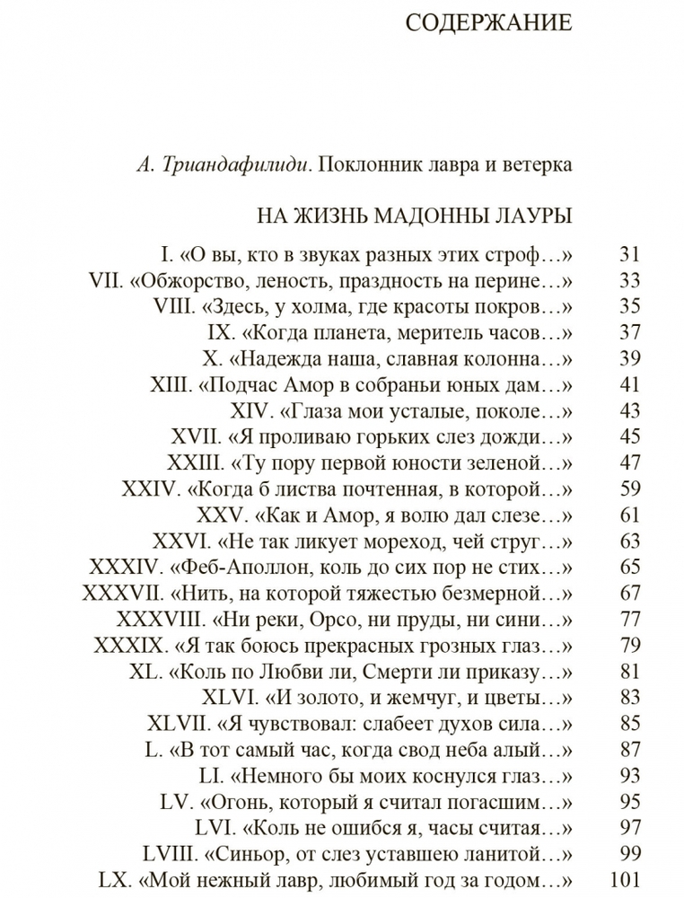 История русских переводов Петрарки, начавшаяся с Г.Р. Державина, продолжается и в XXI веке. В настоящем издании представлены новые, неизвестные русскому читателю переводы ста пятидесяти стихотворений Петрарки, выполненные Александром Триандафилиди. Семь из них впервые пополнят русский «Канцоньере».