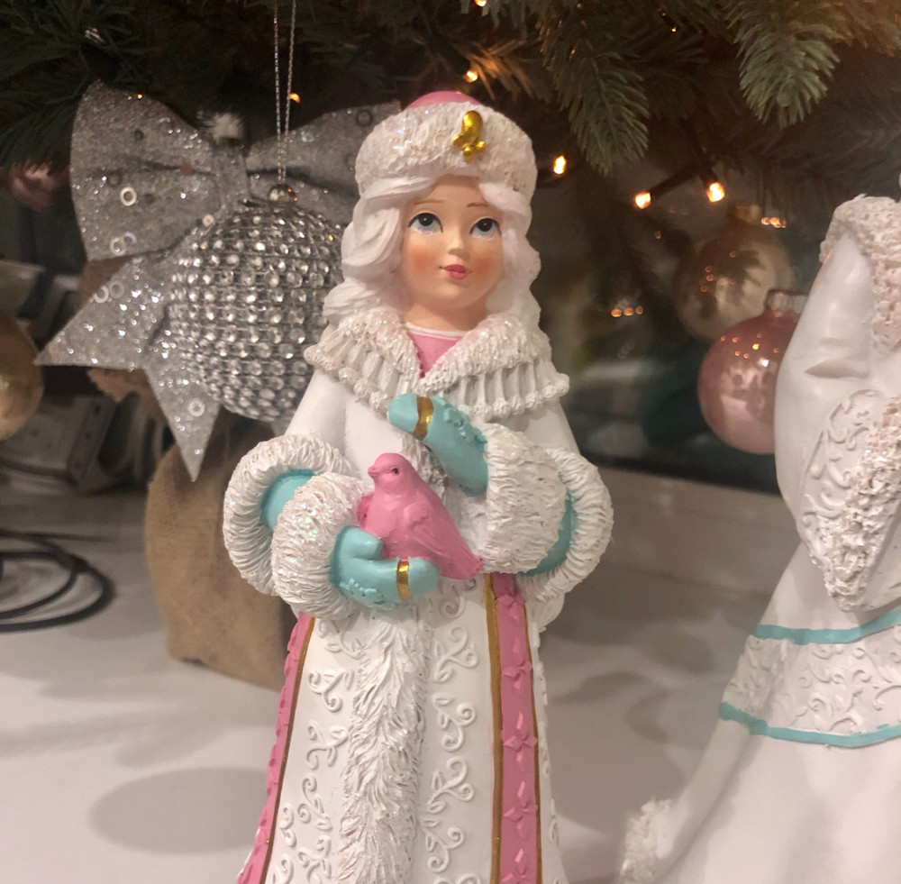 Снегурочка супер! Только она не из того материала, как указано. Она хрупкая, вроде как из полимерной глины и покрашена. Взяла в паре с дед морозом.