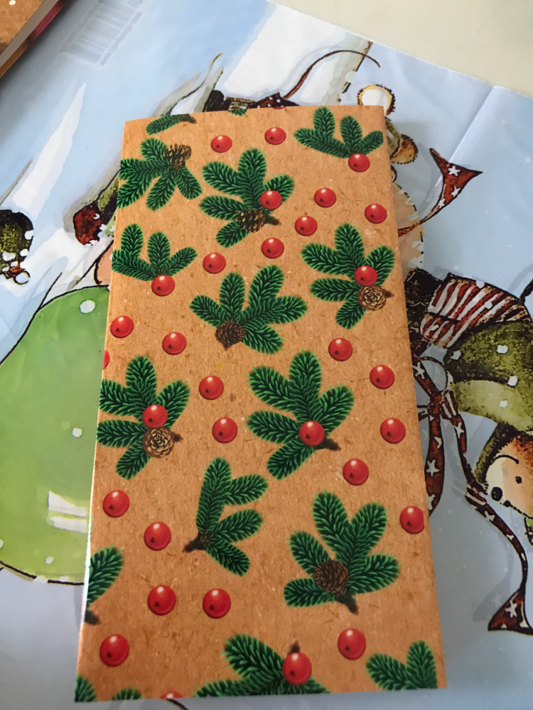 Бумага тонкая, кажется глянцевая. Рисунок симпатичный, хорошо отпечатан. Цвета как на фото. Думала будет пошире, для шоколадки "Рахат" впритык, не получается наклеить внахлест.