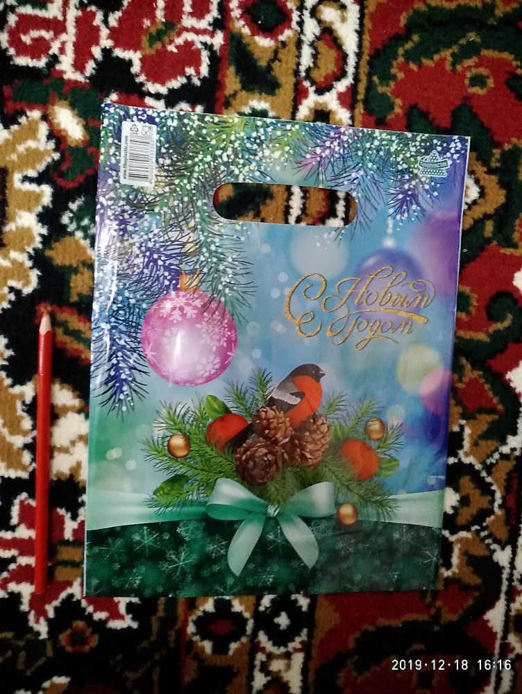 Хороший пакетик на сувенир, размер чуть больше А4, яркий рисунок