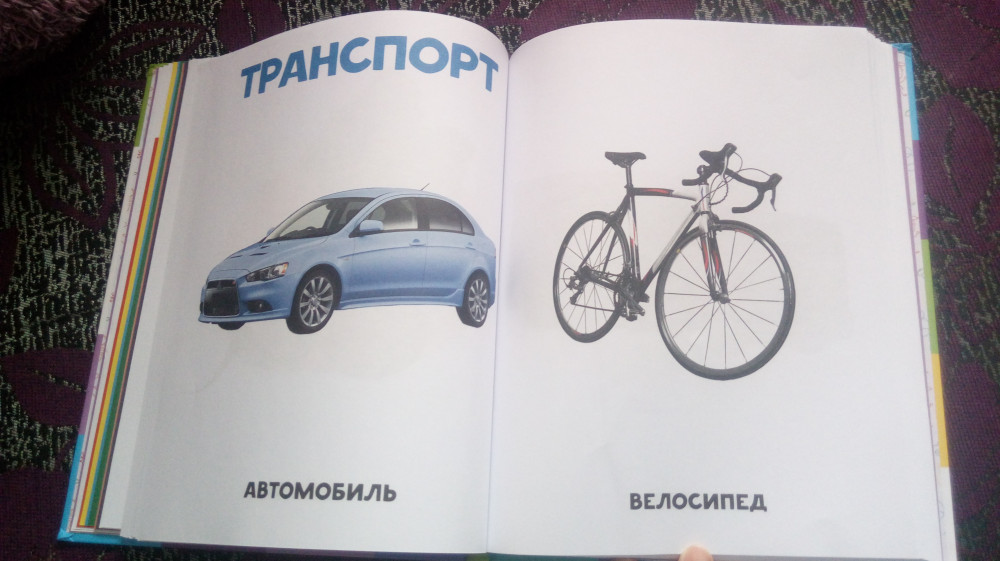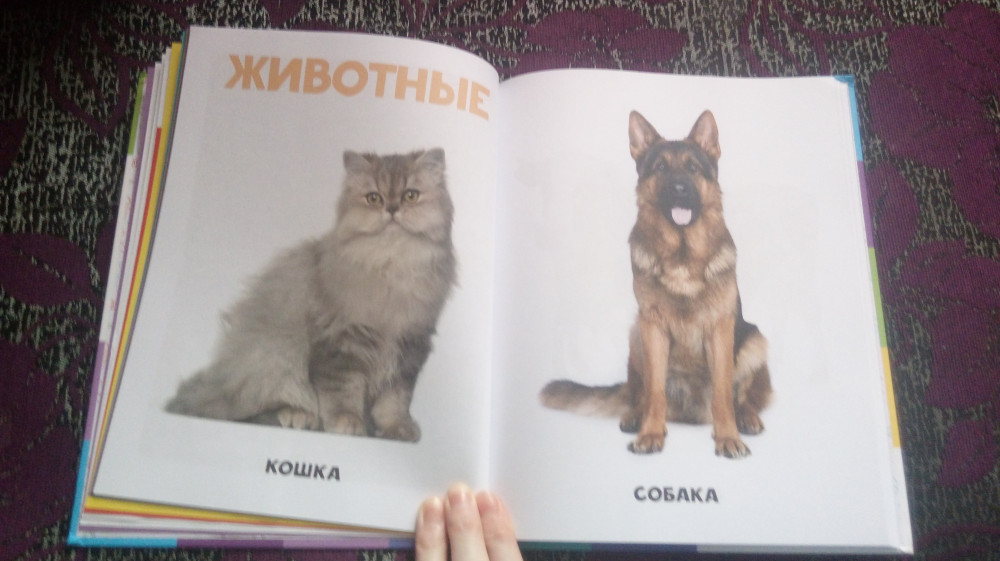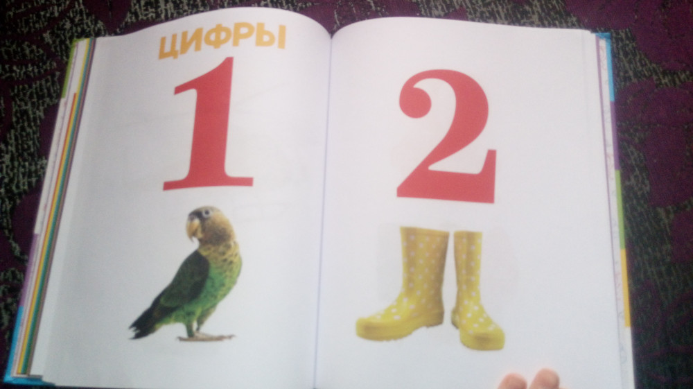 Ребенку 2 года, книгу несколько раз за день приносит, любит называть картинки. Есть любимые темы. А где фрукты так вообще пытается лизнуть. На столько сочно и вкусно они изображены. Конечно, хотелось бы побольше картинок на каждую тему, но тогда книга огромная просто будет.