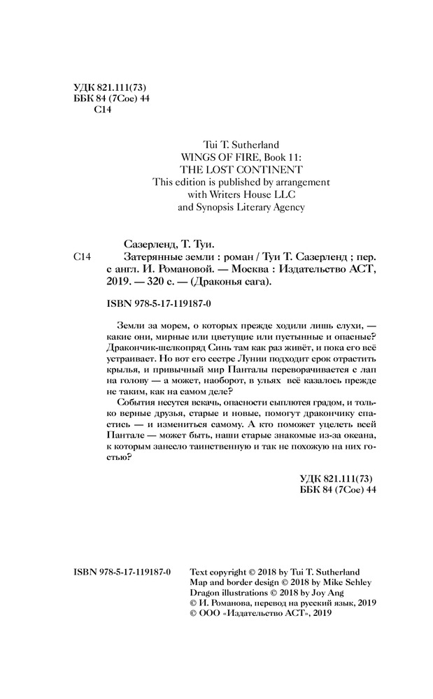 💳 Оплатить за товар можно при получении 🇰🇿 Есть бесплатная доставка по Казахстану от 1 дня 🎁 Копите бонусы с каждой покупки Серия: Драконья сага Земли за морем, о которых прежде ходили лишь слухи — какие они, мирные или цветущие или пустынные и опасные? Дракончик-шелкопряд Синь там как раз живёт, и пока его всё устраивает. Но вот его сестре, Лунии, подходит срок отрастить крылья, и привычный мир Панталы переворачивается с лап на голову — а может, наоборот, в ульях всё казалось прежде не таким, как на самом деле? События несутся вскачь, опасности сыплются градом, и только верные друзья, старые и новые, помогут дракончику спастись — и измениться самому. А кто поможет уцелеть всей Пантале — может быть, наши старые знакомые из-за океана, к которым занесло таинственную и так не похожую на них гостью? |