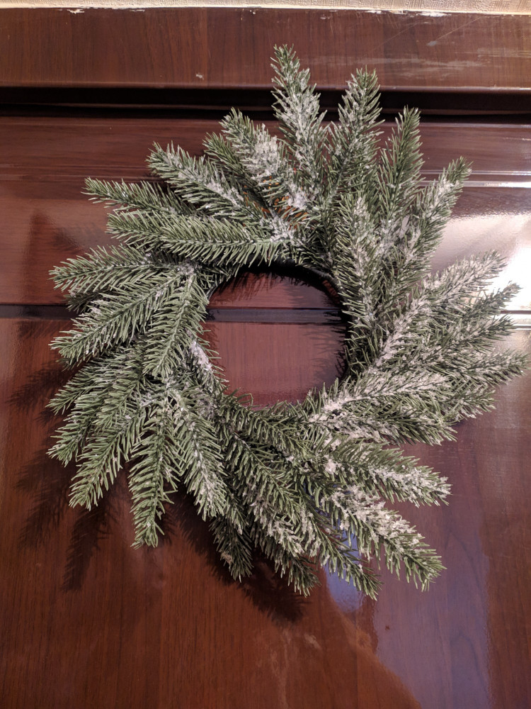 По моему - вполне приличный венок. Единственный недостаток это то, что "снег" осыпается. Надо просто расправить ветки так, чтобы прикрыть каркас.