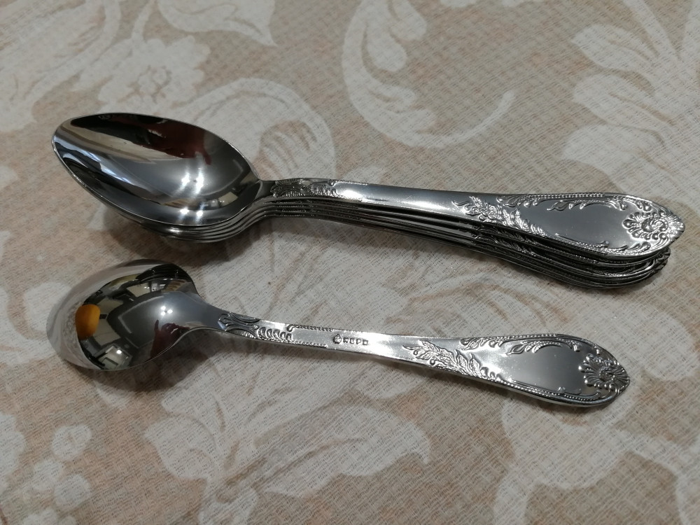 ложки красивые, брала на подарок вилки, ложки и чайные ложки. Хотелось бы еще и остальные приборы. Как в других сериях этого завода. Например вилки для раскладки рыбы, вилки для салата, ложки для салата и лопатки для пирожного