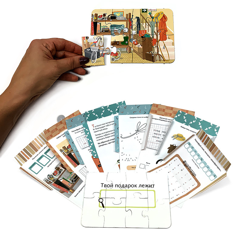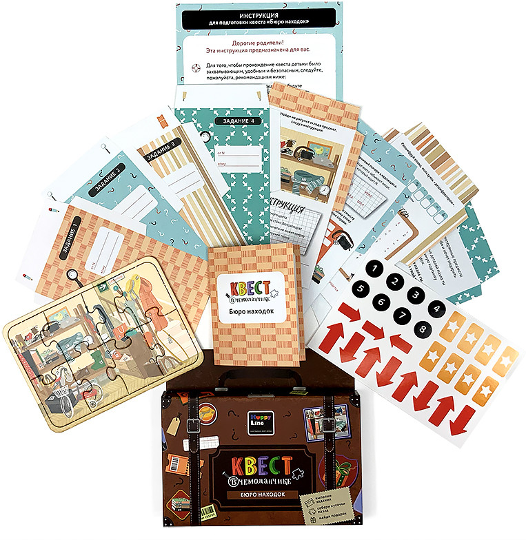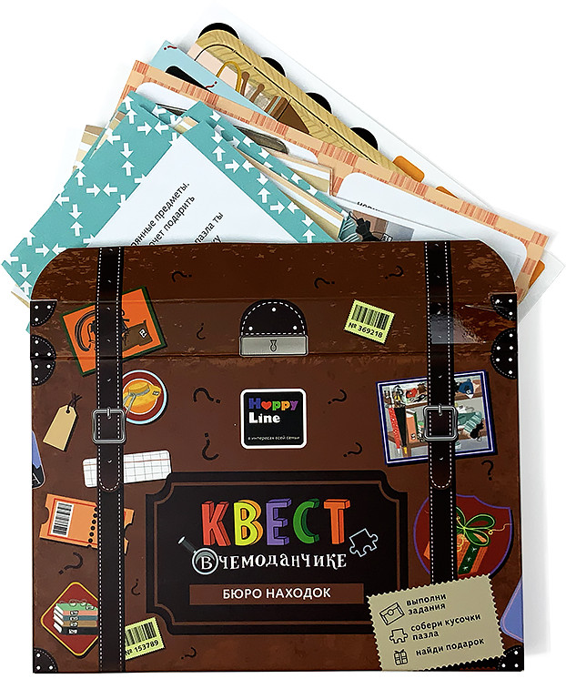 Happy Line Игра настольная «Бюро находок»В данный момент этот товар отсутствует в продаже. Возможно, у нас найдется аналогичный или похожий товар здесь. Серия: Квест в чемоданчике Самое интересное и ожидаемое в любом празднике — это подарок. А что, если не просто вручить подарок, а сделать из этого настоящее приключение с шифрами, загадками, поиском подсказок? С набором «Квест в чемоданчике» это не только увлекательно, но еще и просто! |
