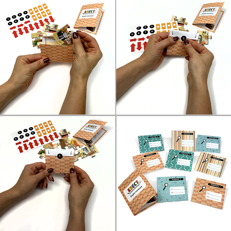 Хороший квест. Детям (от 7-10 лет) было легко, весело, интересно. Очень понравилось, хотят продолжения. Важно хорошо спрятать, тогда дольше искать будут. Спасибо flip.