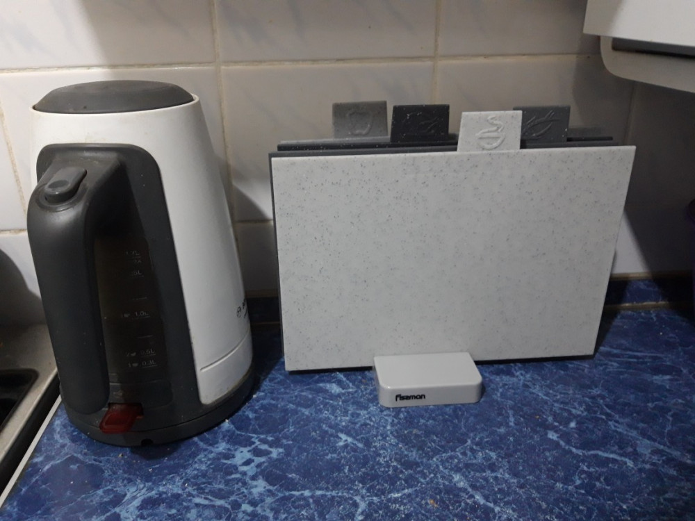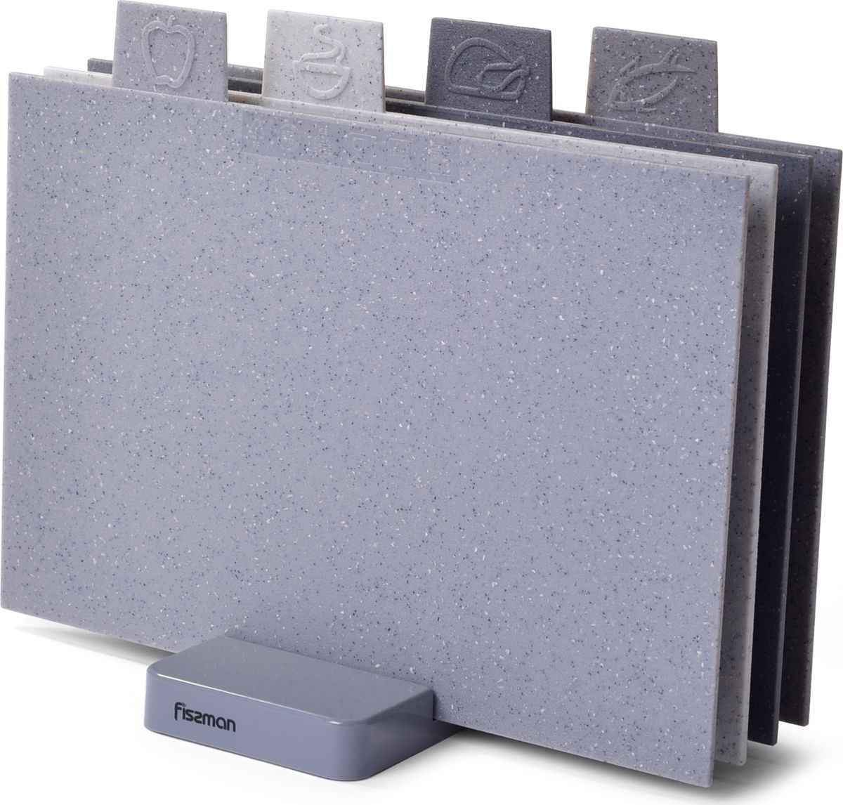 Получила разделочные доски в комплекте 4 штуки. Качеством очень довольна. Удобно то, что на них есть обозначения: для мяса, рыбы, и т.д. Единственный незначительный минус - люблю более яркие цвета, а здесь все доски с оттенком серого. Ну ничего, все равно хорошо вписались в мою кухню (на фото). Уже попробовала в применении, следов от ножа нет, моется тоже хорошо. Спасибо Flip.