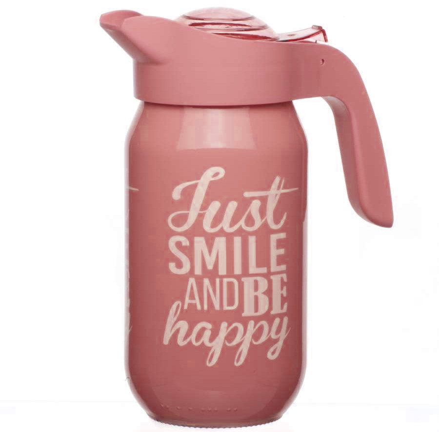 Кувшин симпатичный, понравилась надпись, но к сожалению свою главную функцию кувшина не выполняет. Производителю следует доработать в месте закручивания крышки и кувшина, вода протекает. Покупателю в дальнейшем следует быть внимательным при заказе, так как цвет пришёл розового цвета, на сайте был мятного,а внизу написано, что цвет может отличаться (моя невнимательность), я бы просто не заказала бы, зная что будет другой цвет.