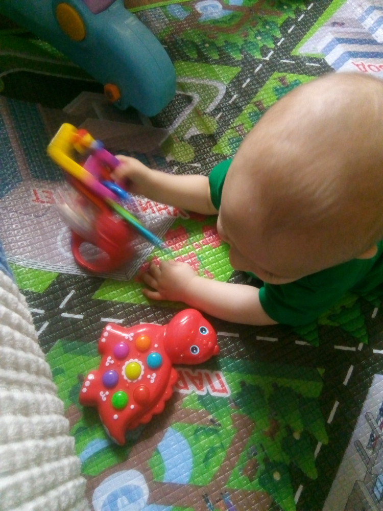Очень хорошая игрушка. Заказывала сыну 6 месяцев. С удовольствием играет. Пока не понимает как нажимать на кнопочки для музыки, но внимательно изучает игрушку. Пластик хороший. Музыка тоже не навязчивая. Рекомендую!