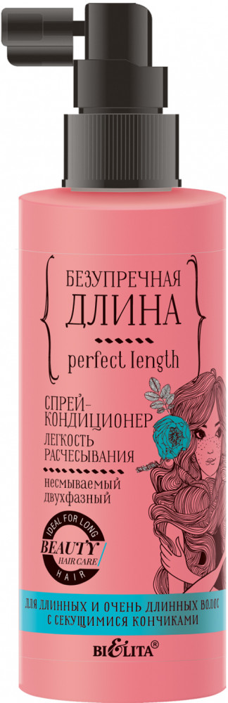 Спрей-кондиционер косметической линии «Безупречная длина» — идеальное средство для дополнительного ухода за длинными и очень длинными волосами.
