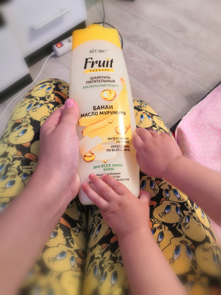 Всем привет! У меня волосы густые до поясницы, не крашенные, не переженные, от шампуня мне нужно чтобы хорошо пенился, был приятный аромат, промывался без труда, не вызывал раздражение кожи головы и перхоти. Все это данный шампунь даёт, я мыла голову на 2 раза им, шампунь в меру густой. Единственное путаются прочесать тяжело, если только им мыть, но для этого есть бальзам, буду заказывать такой же банановый бальзам-маску.