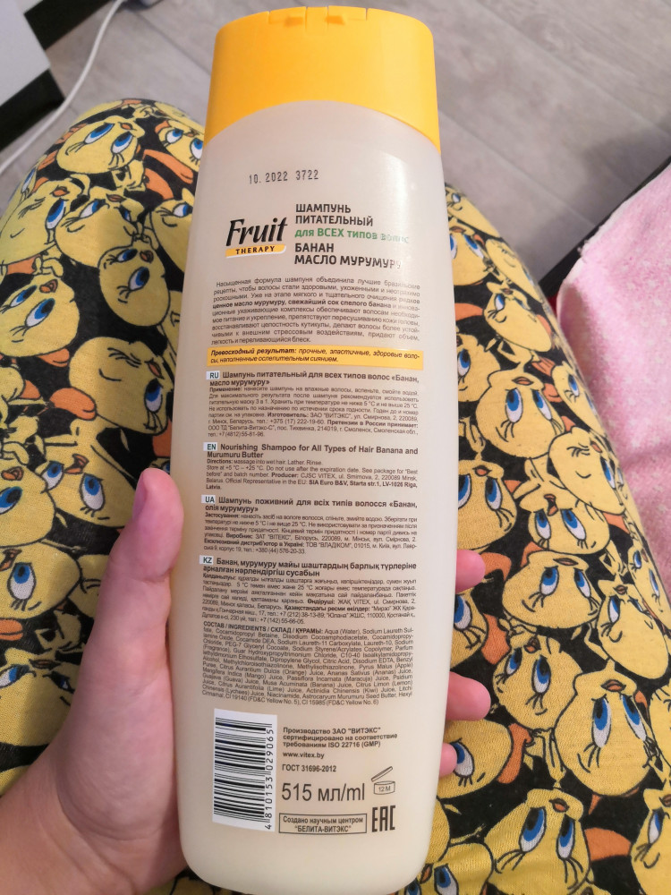 Вiтэкс Шампунь для волос питательный «Банан и масло мурумуру»-25% +18 приятный аромат хорошо промывает хорошо пенится делает волосы мягкими