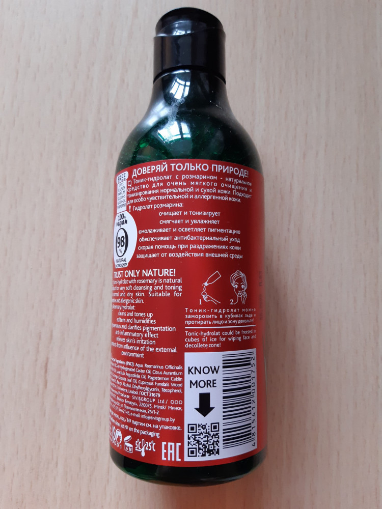 Приятный тоник с тёплым терпким и чуть горьковатым ароматом. Неудобно лишь, что бутылка без дозатора, пульверизатора или хотя бы ограничителя. Но это лишь мне так не удобно пользоваться.