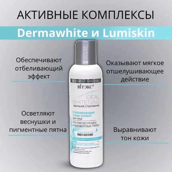 Вiтэкс Тоник-пилинг для лица против веснушек и пигментных пятен-25% +51 приятный запах не стягивает освежает ежедневный уход хороший тоник не осветляет