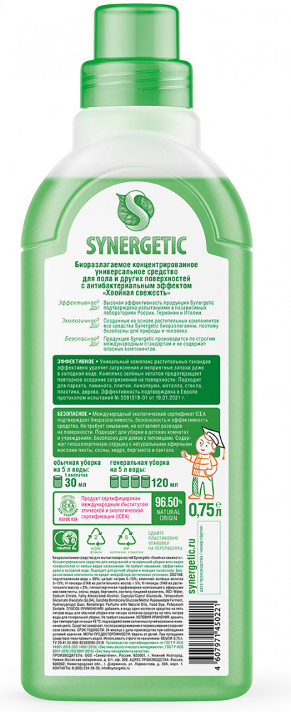Synergetic Средство для мытья пола «Хвойная свежесть»