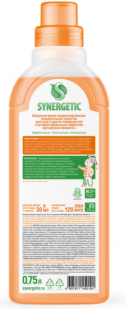 Synergetic Средство для мытья пола «Цитрусовая свежесть»