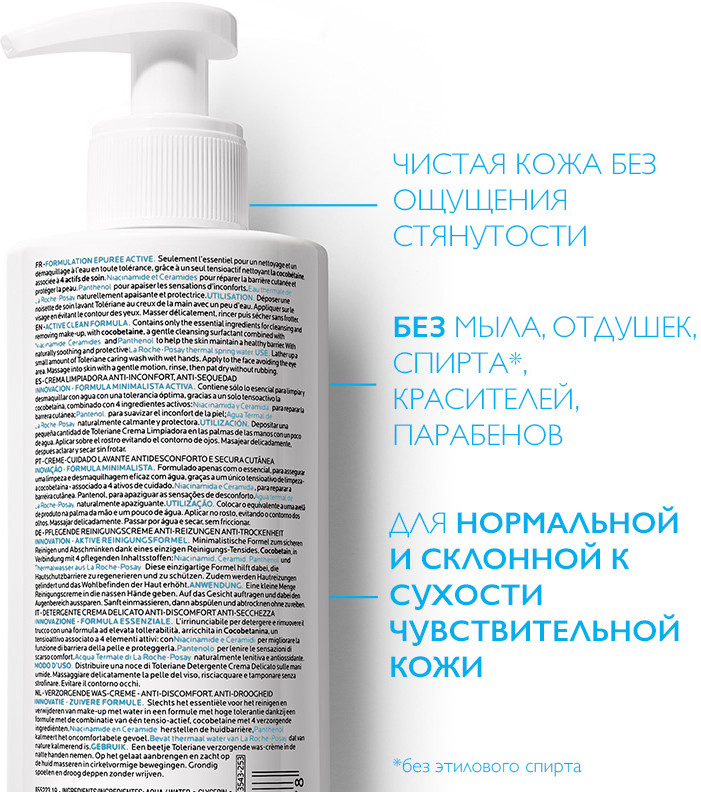 La Roche-Posay TOLERIANE CARING WASH Очищающий крем-гель для умывания+144 кремовая пенка увлажнение чувствительная кожа сухая кожа