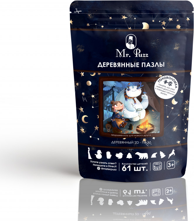 Mr.Puzz Пазл деревянный «Маршмеллоу для нового друга»В данный момент этот товар отсутствует в продаже. Возможно, у нас найдется аналогичный или похожий товар здесь. Этой зимой Алиса познакомилась с необычным лесным жителем. Это произошло случайно, когда она решила пожарить лакомство на костре. Насаживая маршмеллоу на палочку, она заметила, что большой белый сугроб любопытно наблюдает за ней. Смелая Алиса не испугалась, а предложила новому другу присоединиться к ее сладкому ужину. А теперь разгадайте, как же зовут нового друга Алисы с помощью таблички, которая находится внутри. |