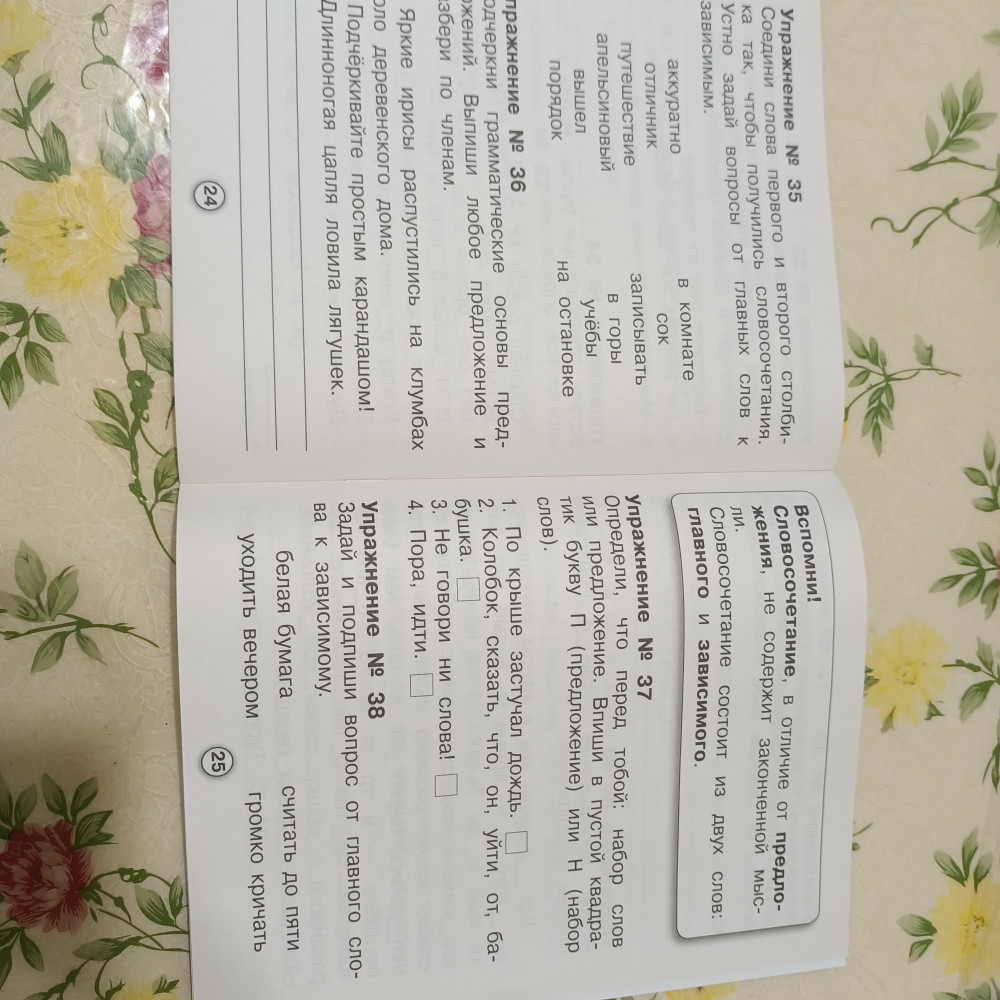 💳 Оплатить за товар можно при получении 🇰🇿 Есть бесплатная доставка по Казахстану от 1 дня 🎁 Копите бонусы с каждой покупки Серия: Рабочая тетрадь младшего школьника В тетради представлены задания на повторение синтаксического разбора предложений. С их помощью младший школьник вспомнит главные и второстепенные члены предложения, повторит все характеристики предложений и основные орфограммы. |