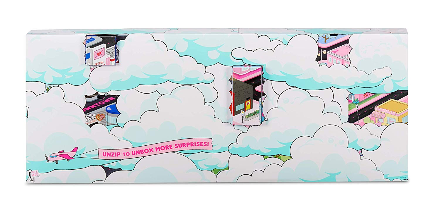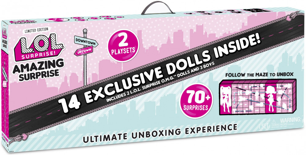Набор состоит из 14 эксклюзивных куколок, живущих в Downtown и Uptown: 2 большие (23 см) куколки L.O.L. Surprise, 3 куколки L.O.L. Surprise , 3 мальчика L.O.L. Surprise , 4 питомца и 2 куколки сестренки Lils.