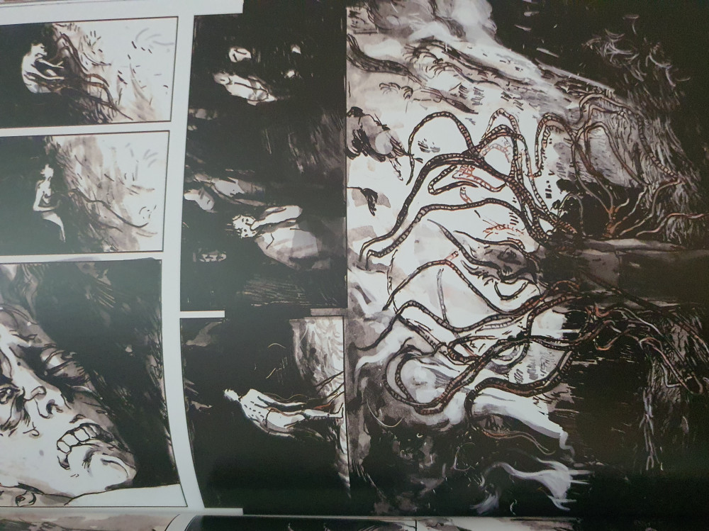Очень долго ждала возможности купить этот комикс. Заинтриговало описание и название. Все таки я дождалась. история на 5 звезд очень интересно и хочется узнать что будет дальше. Но есть одно но. Понимаю что рисовка специально так стилизована вот только проблема что порой очень тяжело разглядеть что там происходит приходится напрягать глаза и всматриваться что бы понять что происходит + из-за той же рисовки иногда тяжело различать второстепенных персонажей. Если вас это не смутит то однозначно рекомендую.