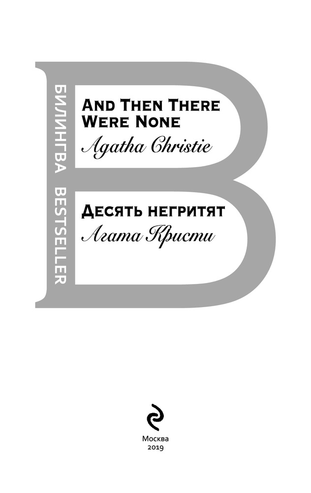 Десять негритят. And Then There Were NoneВ данный момент этот товар отсутствует в продаже. Возможно, у нас найдется аналогичный или похожий товар здесь. Серия: Билингва Bestseller Десять никак не связанных между собой людей в особняке на уединенном острове... Кто вызвал их сюда таинственным приглашением? Зачем кто-то убивает их, одного за другим, самыми невероятными способами? Почему все происходящее так тесно переплетено с веселым детским стишком? |